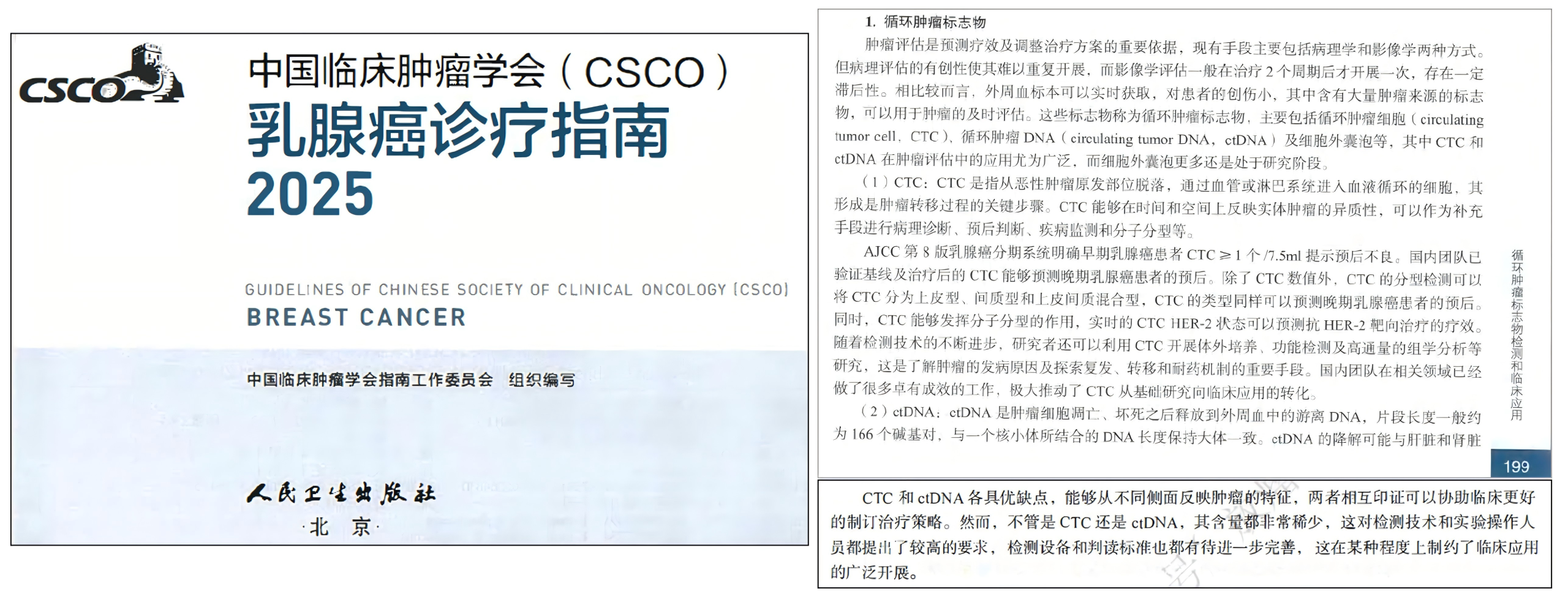 2022年8月,中国抗癌协会肿瘤标志专业委员会乳腺癌标志物协作组汇集了临床、病理、分子检测等领域专家,编写并发布了《基于靶标指导乳腺癌精准治疗标志物临床应用专家共识(2022版)》。该共识指出循环肿瘤细胞检测具有无创动态、可实时检测的优势,是辅助指导乳腺癌患者个体化治疗的一大“利器”,可替代或补充组织样本进行病理诊断、预后评估、分型分析等,还可动态监测CTC用于疾病进展或疗效评估;CTC计数对早期和转移性乳腺癌均有良好的预后价值,其中早期乳腺癌CTC计数≥1个代表有微小残留病灶的存在或提示较差的预后。
